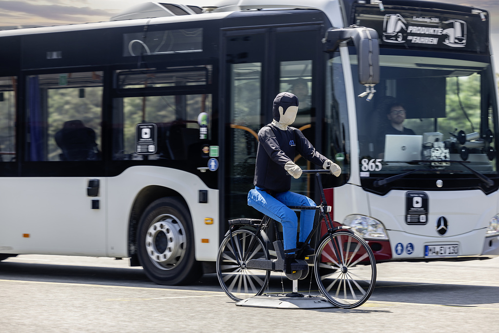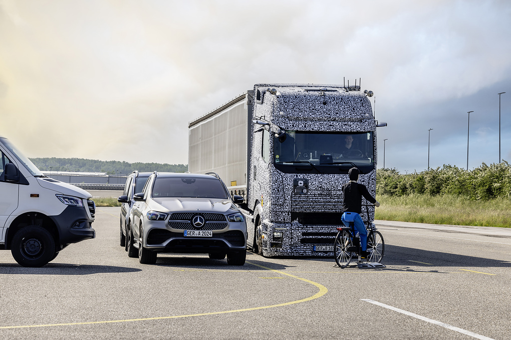 У випробувальному центрі EVZ компанії Daimler Truck у Верті постійно ведеться робота над перевіркою нових систем активної безпеки. У цьому беруть участь різні вантажівки – Actros, Arocs, eActros, Atego, а також міські та туристичні автобуси марок Mercedes-Benz та Setra. Не забуті й машини підрозділу MB Special Trucks – Econic та Unimog. Спеціальний полігон дозволяє імітувати дорожні умови різних країн – Південної Америки, Кореї, Африки та, звичайно, Європи. Протягом року таким чином перевіряються близько 60 машин.