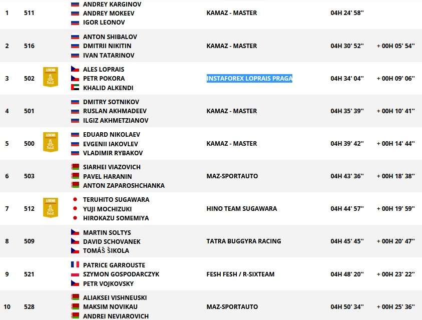 «Восьмой спецучасток мы проехали средне, можно так сказать – у нас возникли небольшие проблемы со сцеплением, передачи не включались. На этом потеряли время – минут пять-десять. Поэтому у нас сегодня такое время. Но вера в хороший результат ещё не потеряна. Сегодня многие из тех, кто шёл впереди нас, сидели на дюнах, буксовали. Поэтому я думаю, что приключения нас ещё ждут, всё впереди, всё будет хорошо!