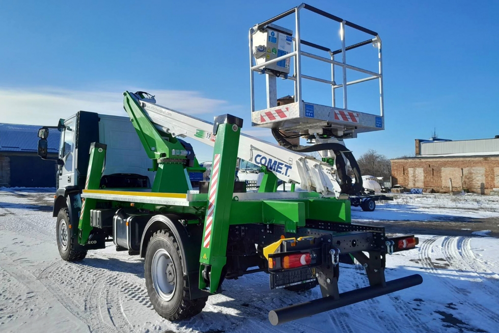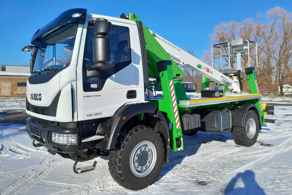Зима, що так швидко настала з рясними снігопадами додала роботи аварійно-ремонтним службам обленерго. Проте останні не падають духом та оперативно усувають неполадки на лініях. А допомагають їм у цьому новітні автогідропідйомники, причому вітчизняного складання. Днями Завод спецтехніки «Техкомплект» відправив для «Прикарпаттяобленерго» найпопулярнішу автовишку італійської марки Comet – модель 19-2-14HQ. У даному випадку вона встановлена на повнопривідному шасі IVECO EuroCargo ML110-250 (4х4).