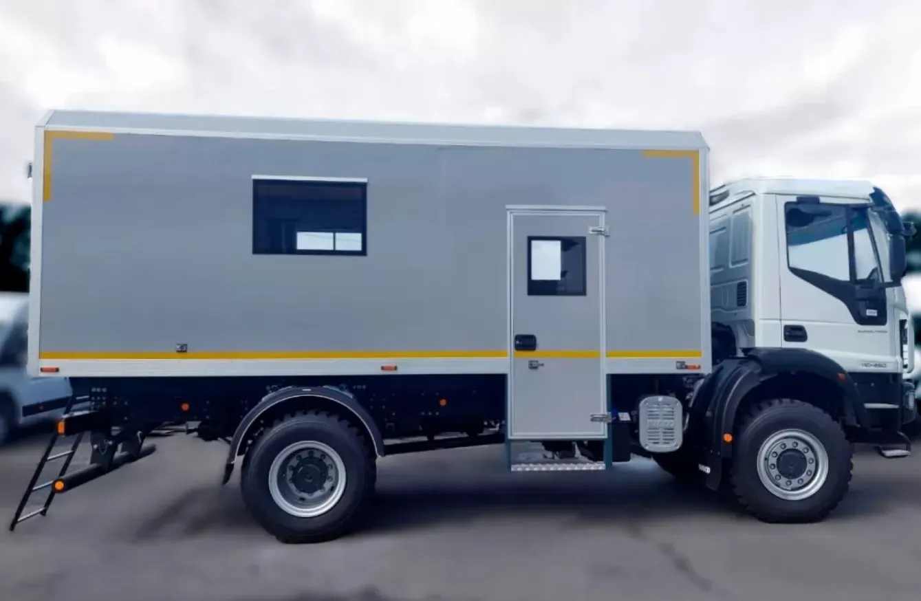 Другий відсік, технологічний, з доступом через двостулкові задні двері. У відсіку встановлено верстак та металеву шафу. Майстерня укомплектована автономним обігрівачем та LED-освітленням. Шасі IVECO Eurocargo ML 110-250 (4х4) розраховане на повну масу 11 т та оснащено 250-сильним двигуном.