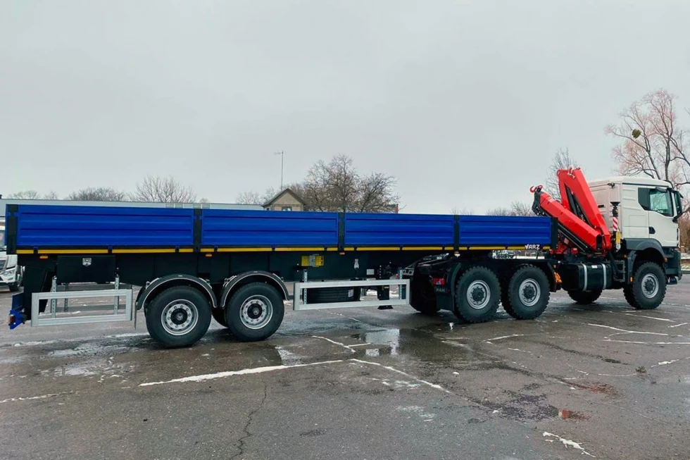 Що ж до бортового напівпричепа ВАРЗ-НПМ 2311, то він розрахований на повну масу 28,5 т. Навантаження на двовісний візок з пневмопідвіскою сягає 18 т.