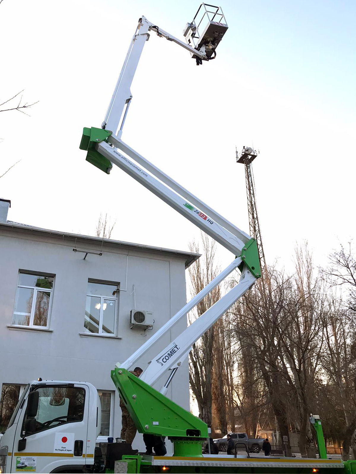 Днями Завод спецтехніки «Техкомплект» поставив для «Миколаївобленерго» автовишку Сomet 26-2-13 HQ JIB, яку придбали коштом японських меценатів. Вперше для автогідропідйомника цієї моделі підприємство використовувало шасі Isuzu NPS75L (4х4).