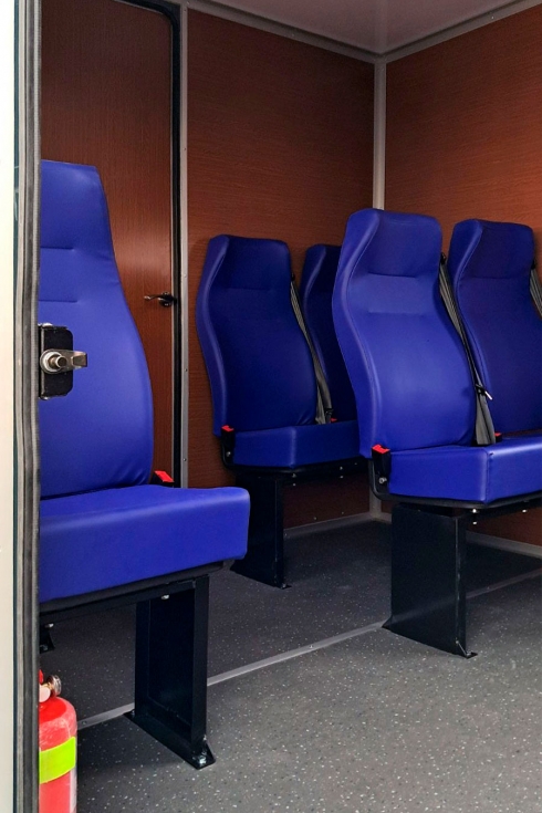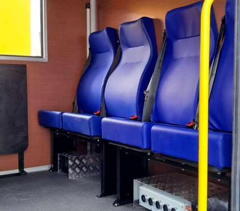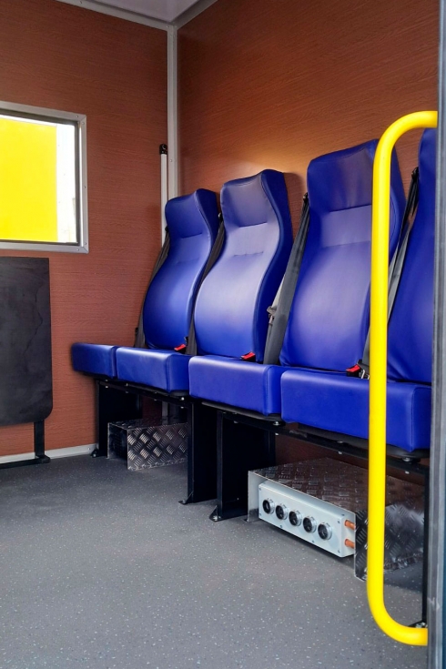 Шасі з тримісною кабіною обладнано фургоном, в якому змонтовано 10 комфортабельних сидінь із триточковими ременями безпеки. В оснащення входять автономний обігрівач, відкидний столик, вентиляційний люк у стелі. Посадку-висадку полегшують широкі бічні двері, висувна драбина та поручень.