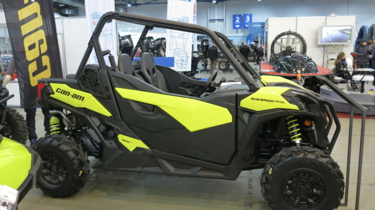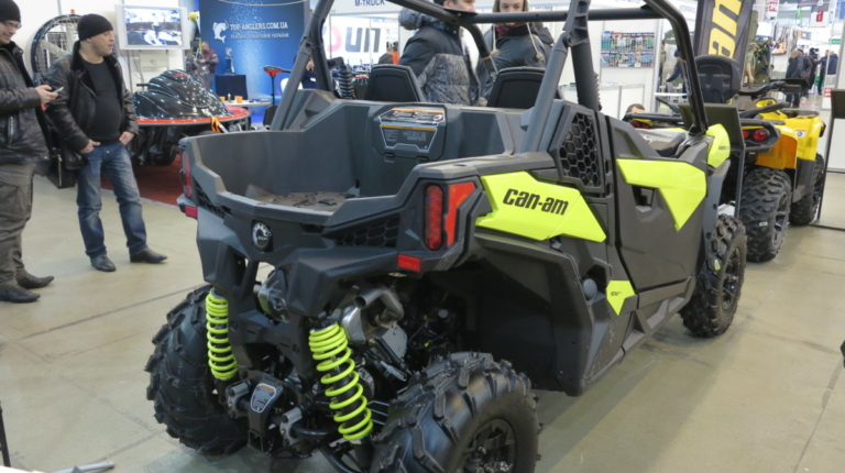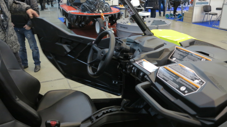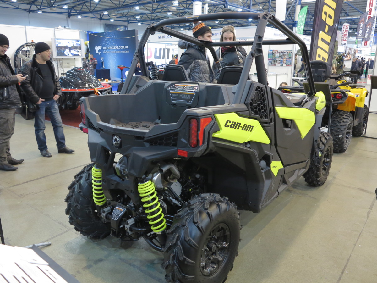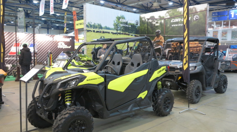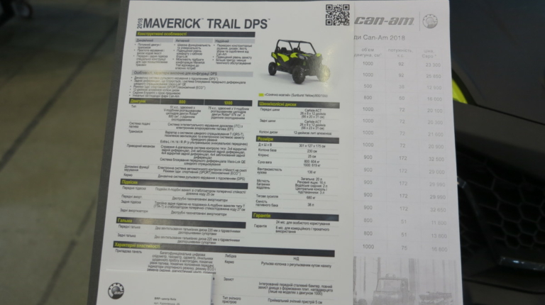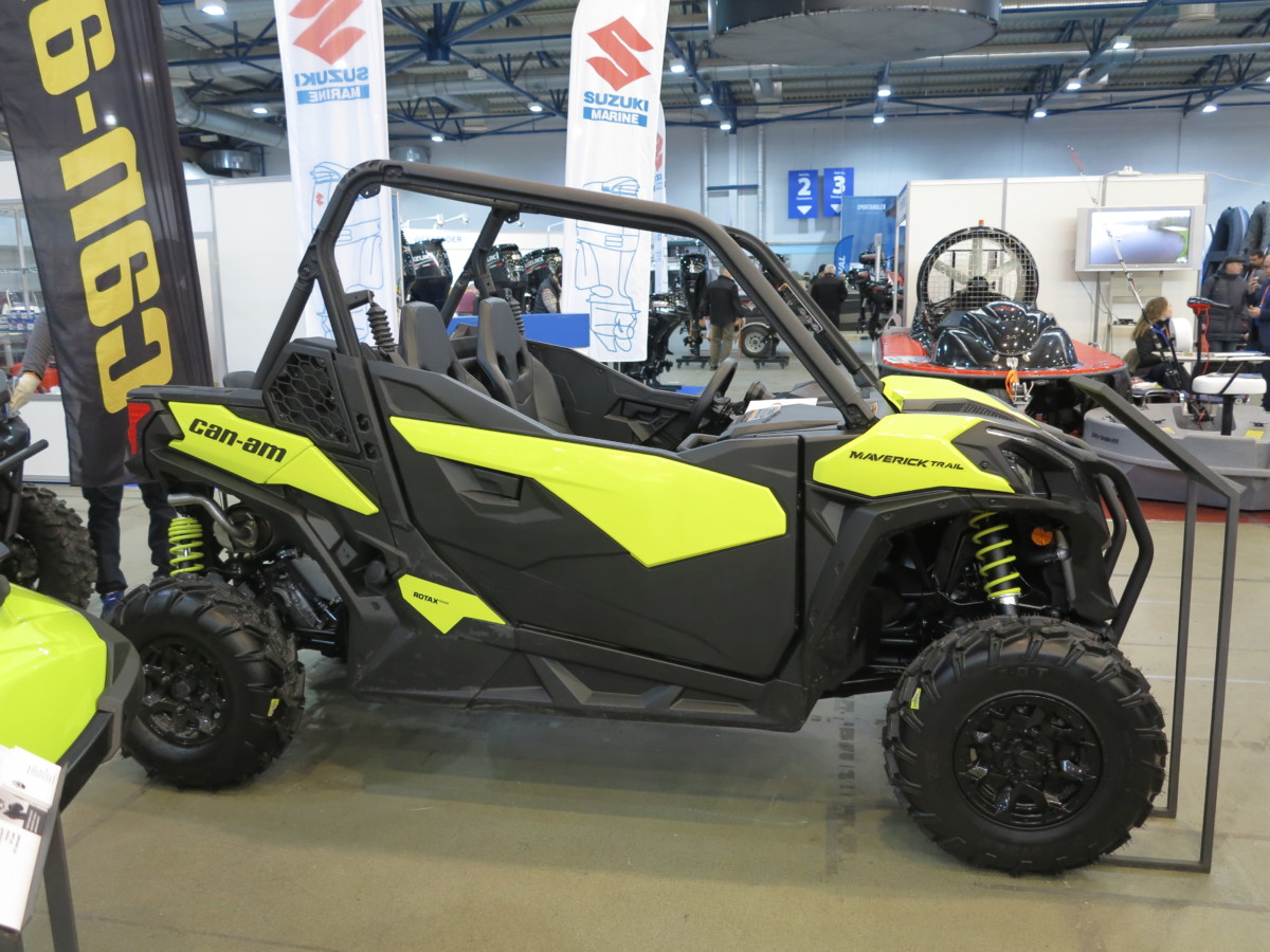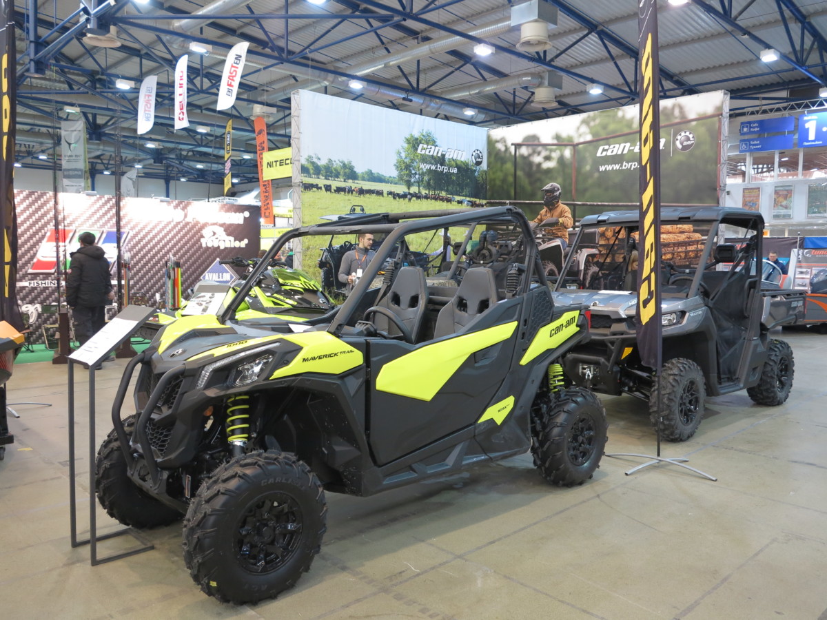 В помещении посетители могут ознакомиться с широким ассортиментом квадроциклом марки Can-Am, которые представлены BRP Центр Киев. На стенде прежде всего стоит отметить новинку 2018 года – модель Maverick Trail DPS, укомплектованную V-образным 1000-кубовым двигателем мощностью 75 л.с. и бесступенчатой трансмиссией – вариатором QRS-T.