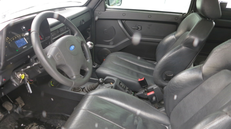 Проведена основательная доработка по усилению ходовой, установлена защита двигателя, появилось и ГБО с баком на 50 литров. В салоне внимание привлекает щиток приборов с цифровым спидометром, а также кожаные кресла от Mercedes-Benz. Имеется и кондиционер.