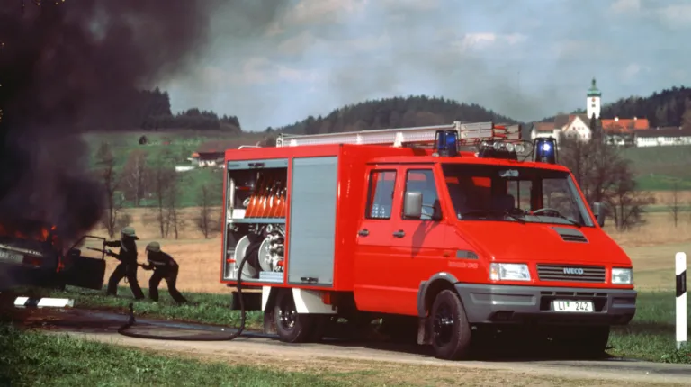 Из отличительных особенностей машины первого поколения сразу можно было выделить первый в классе 2,5-литровый дизельный двигатель, прочную рамную конструкцию и переднюю независимую подвеску колес. Это cделало модель более универсальной – под различные типы кузовов. IVECO Daily сразу стал также и самым вместительным грузовым фургоном с полезным объемом 17 кубометров и внутренней высотой грузового отсека до 210 см.