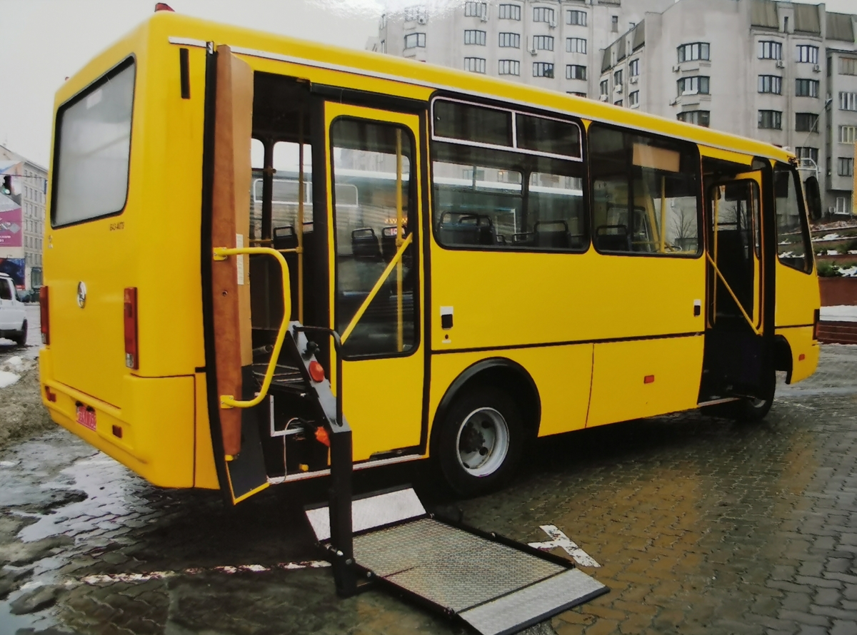 Для завантаження інвалідних візків на ній встановили підйомний майданчик з електрогідравлічним приводом, змонтований в отворі додаткових дверей. Обидві показані новинки – БАЗ А08110 «Волошка» та БАЗ А079.45 хотіли використовувати також для обслуговування гостей майбутнього чемпіонату з футболу Євро-2012.