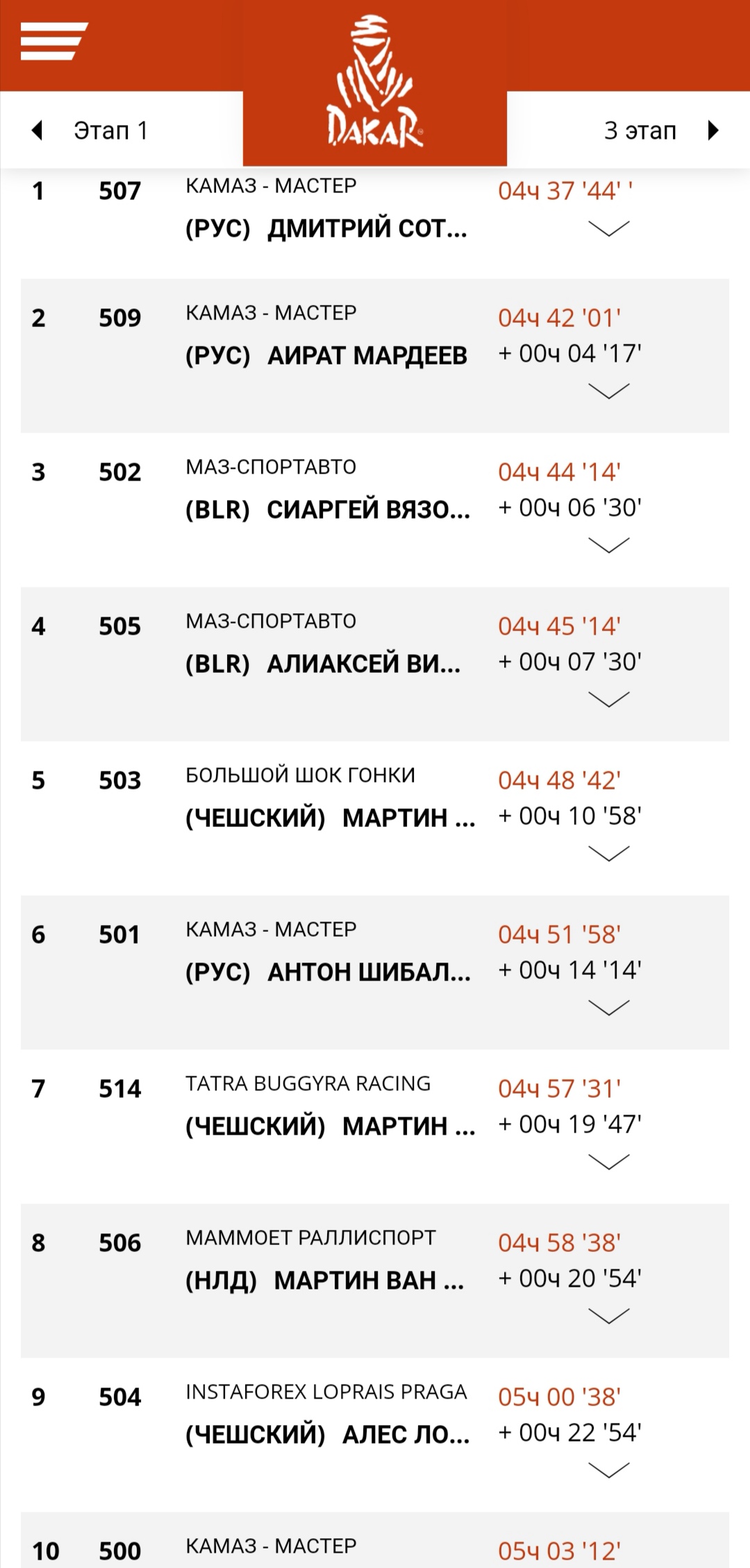 У підсумку Сотников фінішував першим. Його час — 4 години 37 хв. Другим став теж камазівець — Айрат Мардєєв.