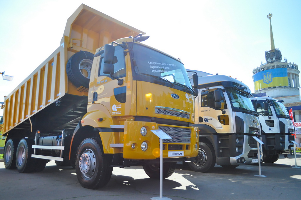 Великий інтерес у відвідувачів виставки викликала нова модель зерновоза Ford Trucks 3542D із колісною формулою 6х4. Автомобіль оснащений самоскидним кузовом об’ємом 33 м3 і має двостороннє розвантаження назад і направо.
