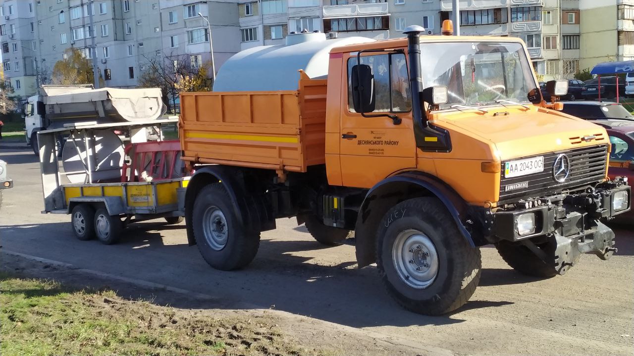 На столичних дорогах сьогодні можна побачити помаранчевий Mercedes-Benz Unimog, який працює у Гідрослужбі КП «Київавтодор». Ця машина є справжнім старожилом та ровесником цього комунального підприємства. Вона була випущена ще 1998 року.