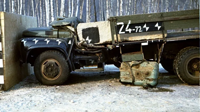 У 1973 році провели ще один краш-тест. У кузов поклали баласт в 6 т і при цьому його вже надійно закріпили. Машину розігнали і знову вдарили об жорстку перешкоду. І знову від кабіни і манекенів у ній залишився коржик. Виявляється, під час удару з кріплень зірвало кузов, який і підім’яв кабіну.
