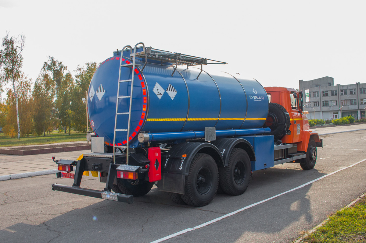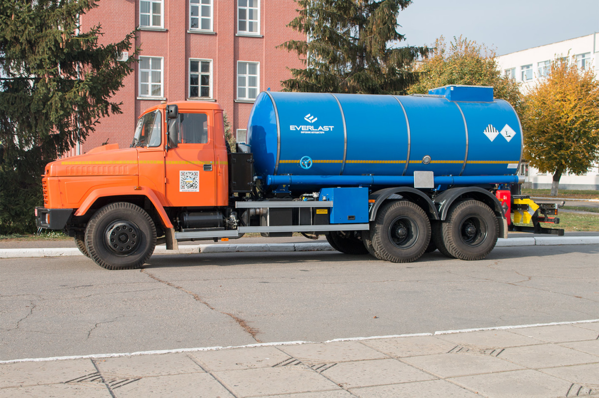 В начале ноября клиентам была отгружен еще одна интересная спецтехника – автоцистерна АЦ-10, изготовленная известной одесской компанией «Эверласт» на шасси КрАЗ-65053 (6х4). Специальная емкость внутренним объемом 10 кубометров предназначена для перевозки конденсата коксового газа.