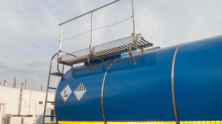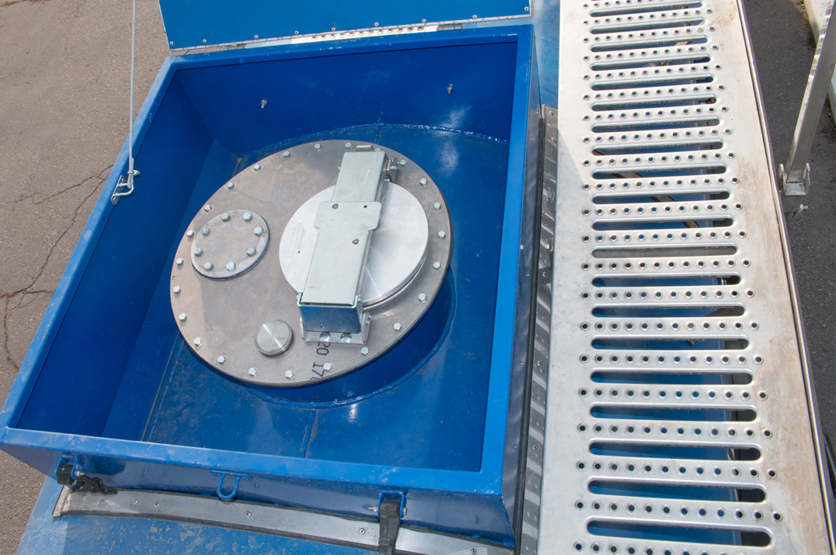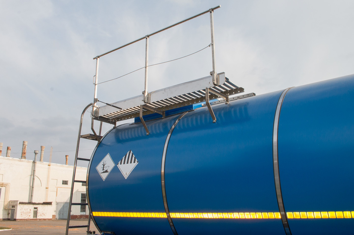 Комплектация включает 6-метровый рукав с быстроразъемными соединениями UNIMAT. Цистерна оснащена жестко закрепленной лестницей, трапом и поручнем для доступа к горловине. Заливная горловина огорожена защитным коробом, имеется дренажный трубопровод для слива воды.