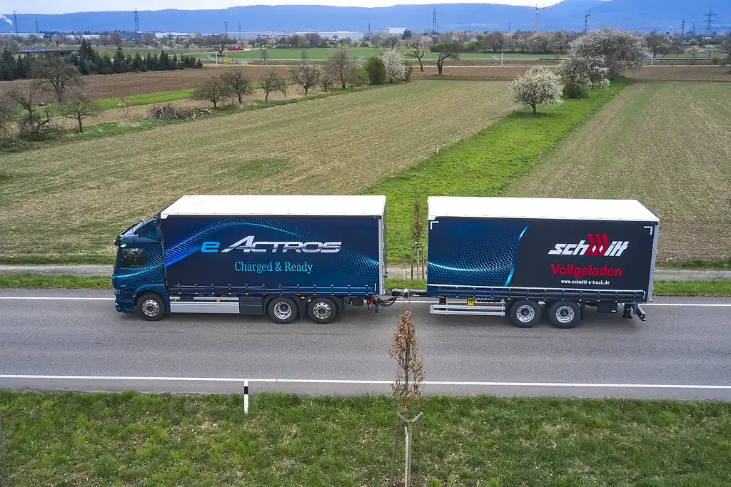 Компанія Mercedes-Benz Trucks розпочала новий етап практичних випробувань електричної вантажівки eActros. У цьому разі машину колісної формули 6х2 передали транспортній компанії Logistik Schmitt. Тут електровантажівка буде працювати з двовісним тентованим причепом Junge, обладнаним зчіпним пристроєм Rockinger.