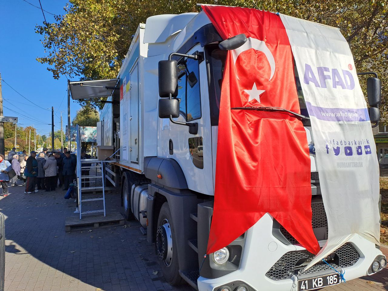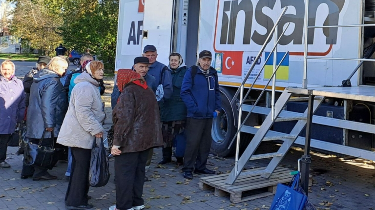Російська війна проти України змусила сотні тисяч людей покинути свій будинок. Сьогодні вони знайшли притулок у спеціальних центрах для переселенців у багатьох містах. Допомогу надають багато зарубіжних партнерів, в тому числі й Туреччина – крім десятків вантажівок з продуктами харчування до нас ще в березні прибув автопоїзд-мобільна кухня, здатна забезпечити щодня гарячими обідами до 500 – 700 осіб. Наразі кухня вже два місяці працює в Чернігові (див. фото), а до цього робила зупинки у Львові, Бородянці та інших населених пунктах.