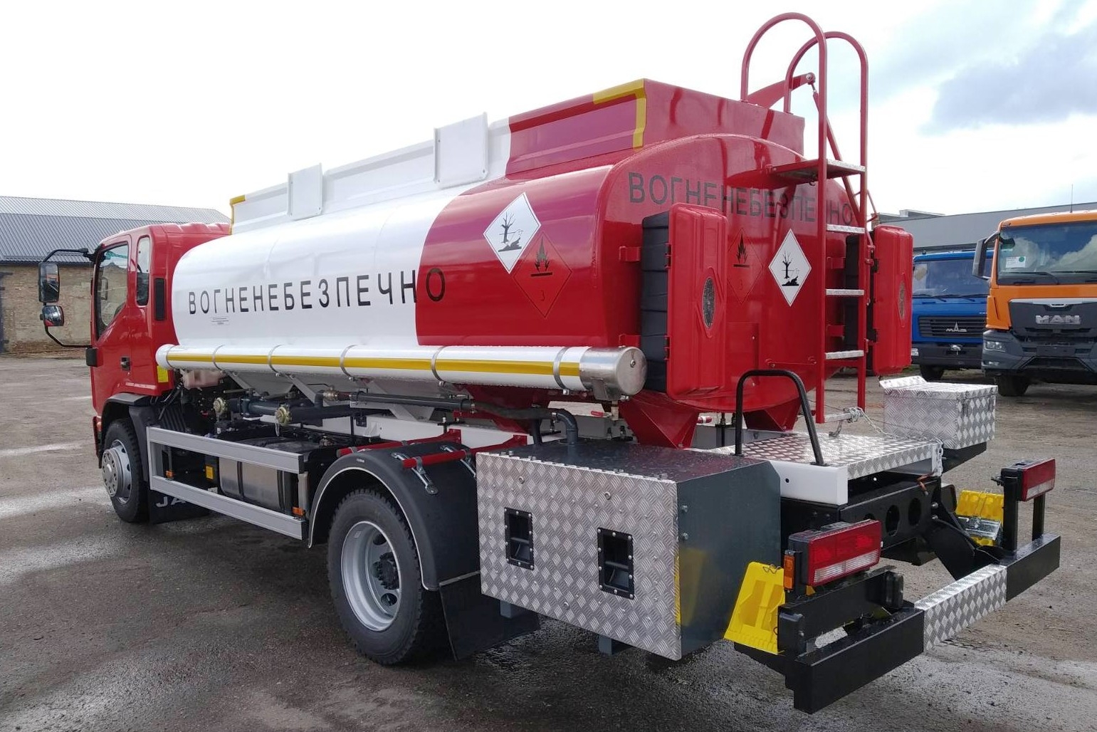 Друга представлена машина – автопаливозаправник АТЗ-8, обладнаний двосекційною цистерною типу “валіза” місткістю 8 кубометрів. Шасі JAC N120 розраховане на повну масу 12 т і укомплектовано 170-сильним турбодизелем Cummins, який працює в парі з механічною, 6-ступінчастою коробкою передач.