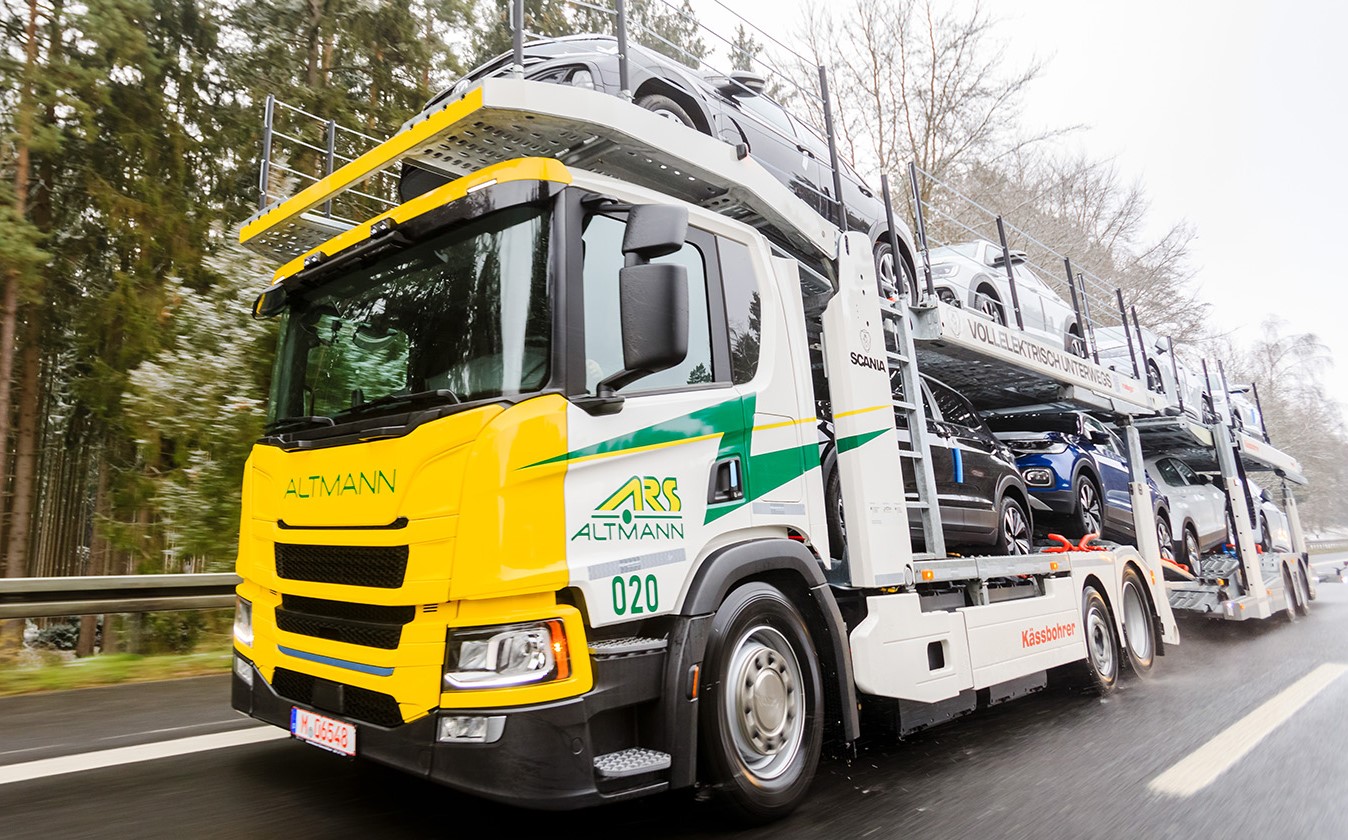 Баварська логістична компанія ARS Altmann Automobillogistik розпочала експлуатацію першого у світі стандартного автовозу на електротязі від компанії Scania. Шасі моделі P25 колісної формули 6х2 обладнано кузовною надбудовою Kassbohrer та працює в парі з причепом тієї ж марки. Такий автопоїзд може перевозити одразу вісім автомобілів. Його повна маса досягає 42 т (максимально дозволена у Німеччині).