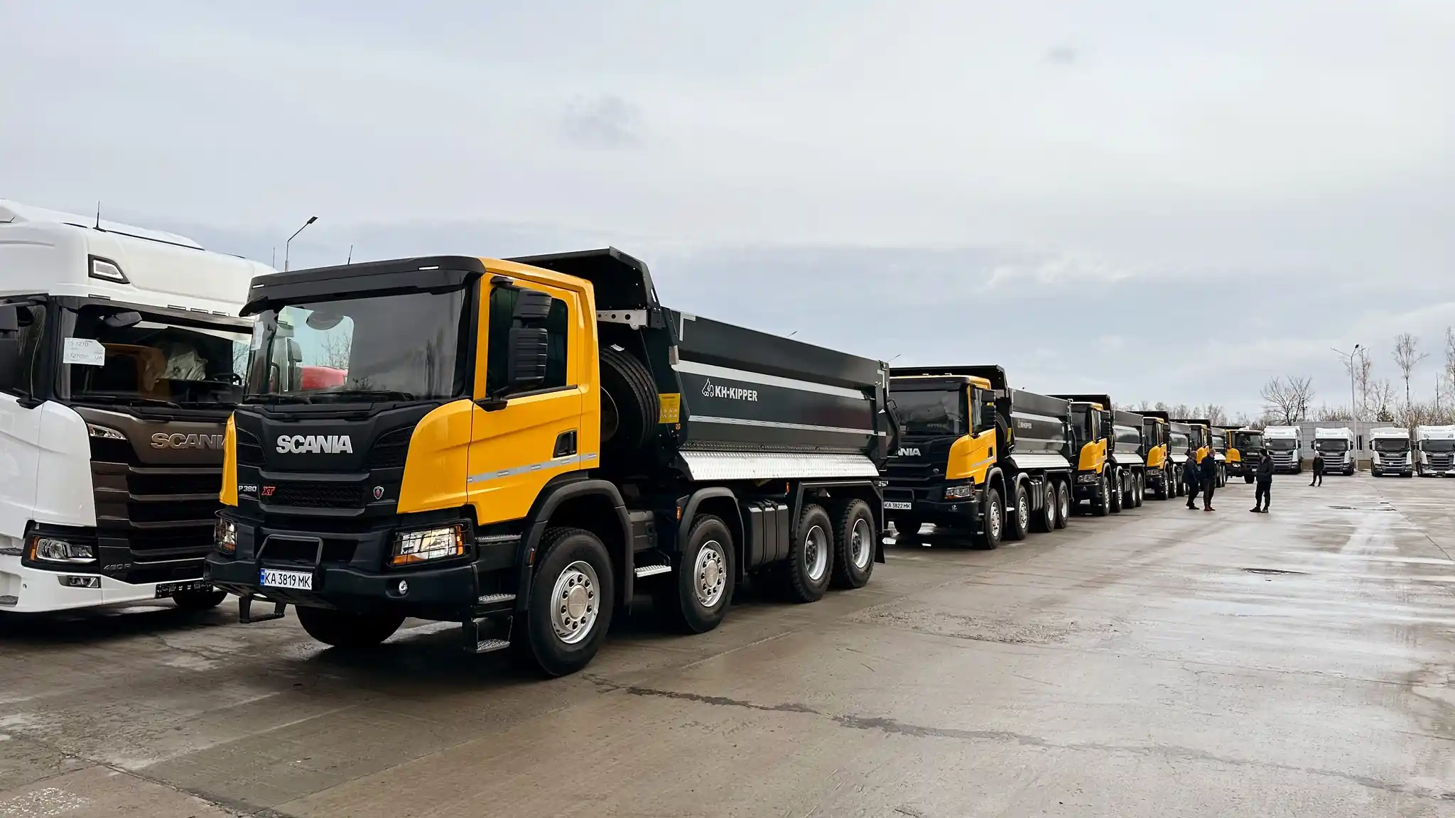 Днями «Сканія Україна» передала замовнику – компанії «Експрес Техбуд» партію із шести одиниць самоскидів Scania P380 колісної формули 8х4. Машини укомплектовані 380-сильним двигуном Євро 5 та коробкою передач з автоматизованою системою перемикання Scania Opticruise. Самоскидна платформа марки KH-Kipper має корисний об'єм 18 кубометрів та підігрів випускними газами. Технічна вантажопідйомність сягає 30 тонн.