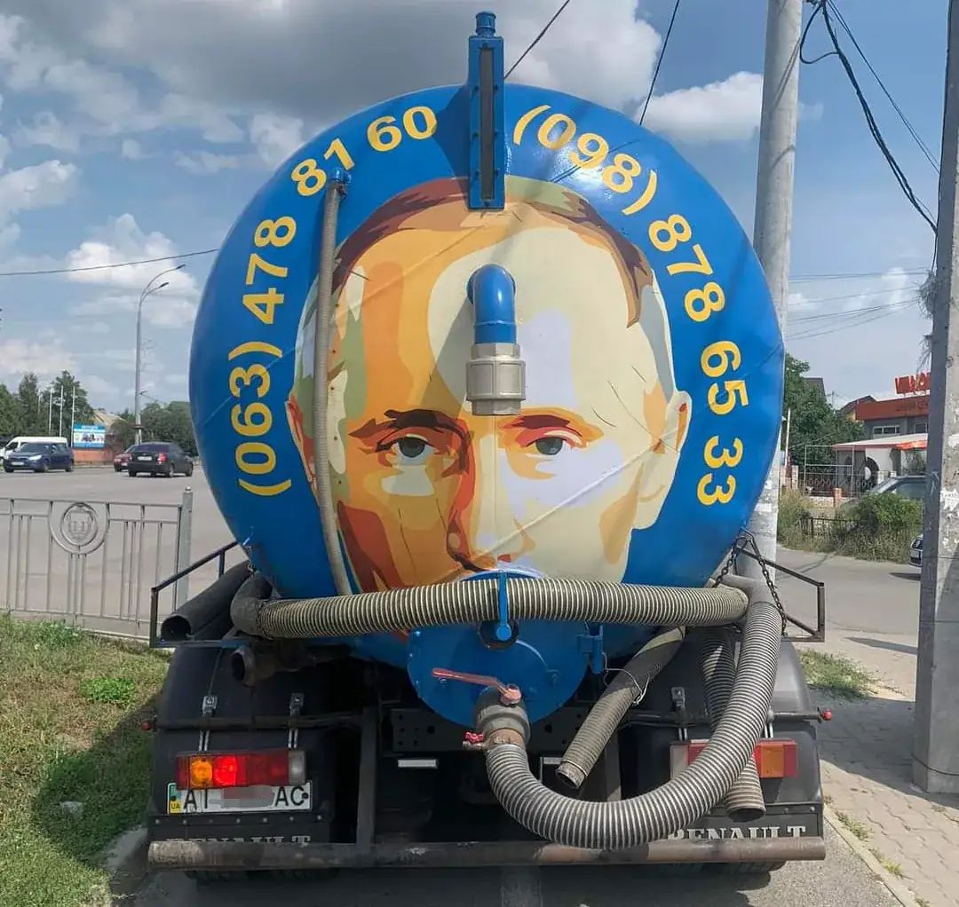А найцікавіше розповів водій цього художньо оформленого асенізатора. Виявляється, багато клієнтів його компанії хочуть тільки цю машину. В результаті, на її частку припадає в півтора раза більше замовлень, а отже й прибутку. Ось так, сам того не підозрюючи, президент рф піднімає український бізнес.