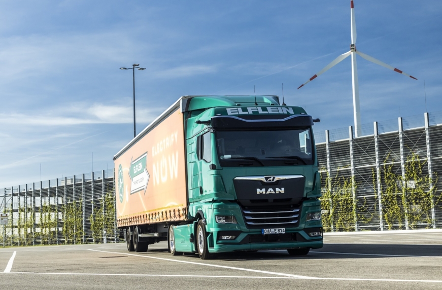 Між заводами BMW у Регенсбурзі та Лейпцигу запустили першу електричну вантажівку MAN eTGX. Магістральний тягач із висотою сідла 950 мм працює у складі напівпричепа підвищеного об’єму, в якому перевозять різні комплектуючі. Дорога в один бік складає 360 км. При цьому машина витрачає близько 75 кВт. год на 100 км.