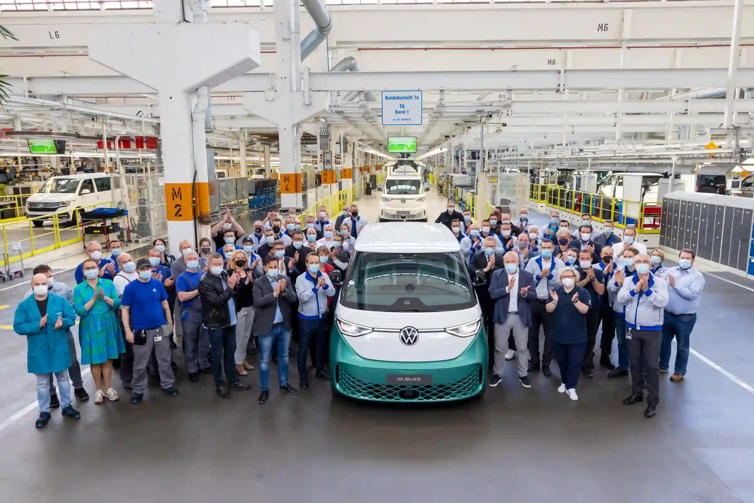 Сегодня, 2 июня 2022 года ознаменовалось новой вехой развития в производстве коммерческих автомобилей Volkswagen. На заводе в Ганновере был запущен конвейер с первым, полностью электрическим развозным фургоном марки – ID. Buzz. Теперь это уже третье «электрическое» предприятие Volkswagen, наравне с фабриками в Цвиккау и Эмдене, где выпускают электромобили семейства ID.