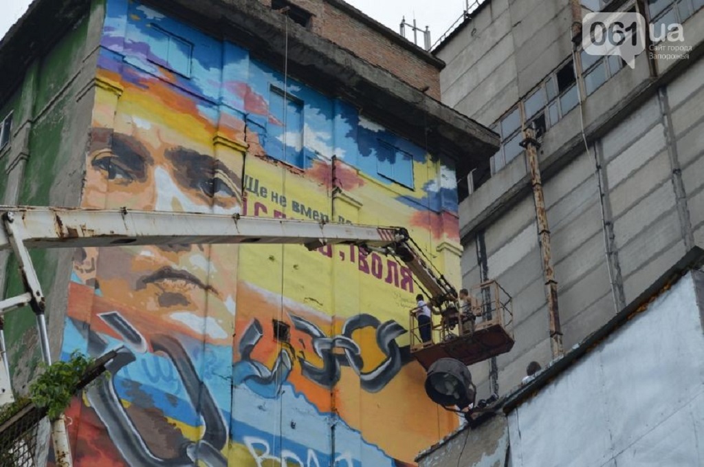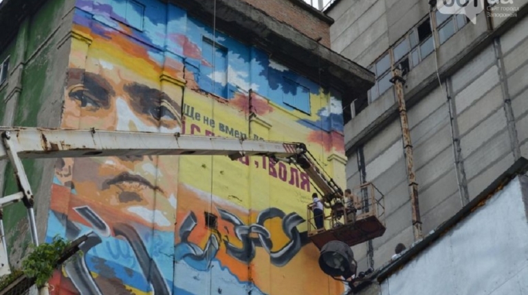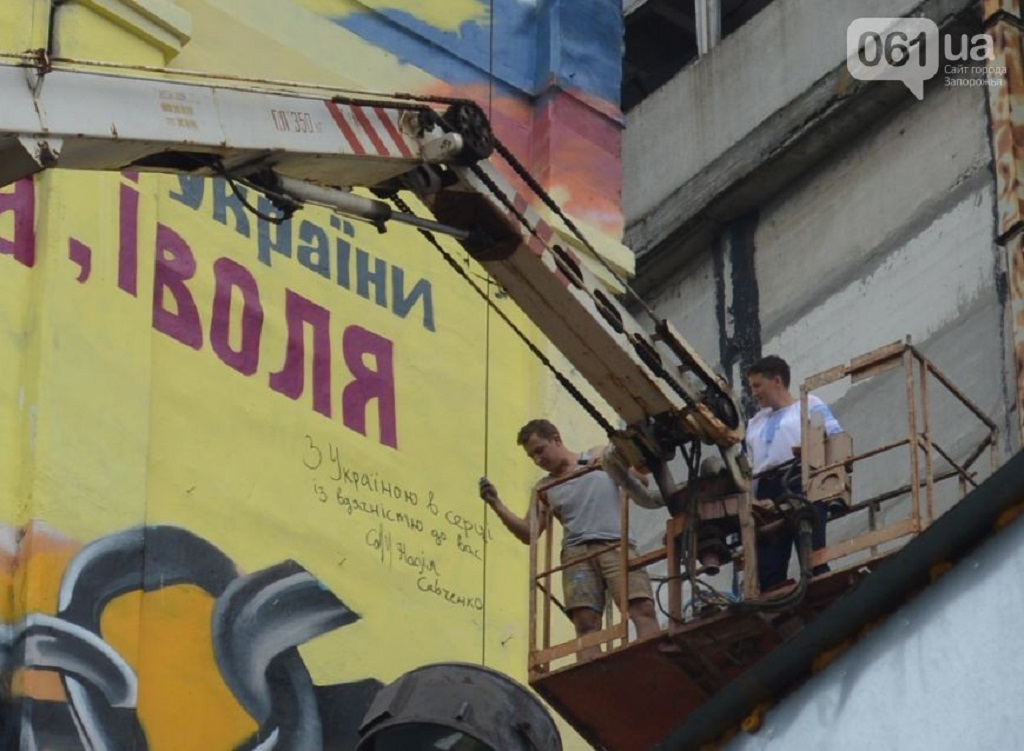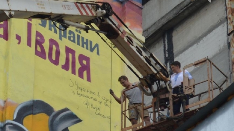 Надія Савченко на пожежному автопідйомнику відкрила мурал
