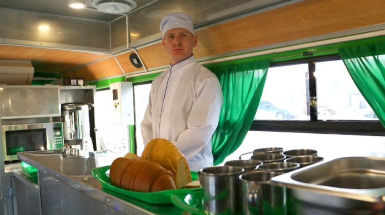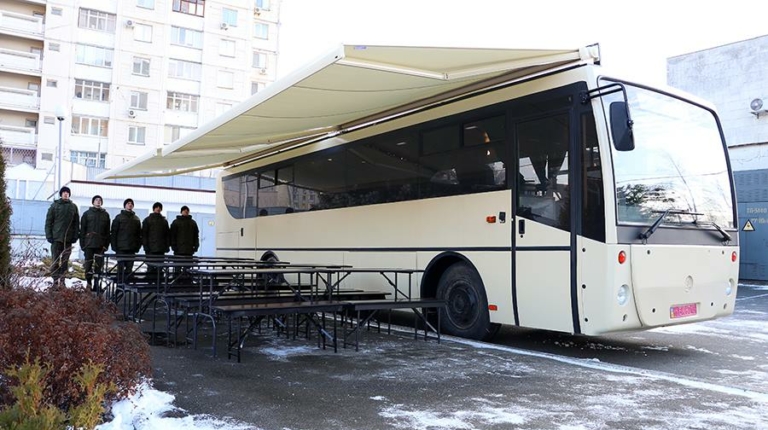 Автобус-столову створили для одному з вітчизняних підприємств. Їх купили у кількості п’яти штук для Національної гвардії України. Тепер бійці можуть з комфортом вживати гарячу їжу, виконуючи завдання на виїзді, наприклад під час охорони громадського порядку.