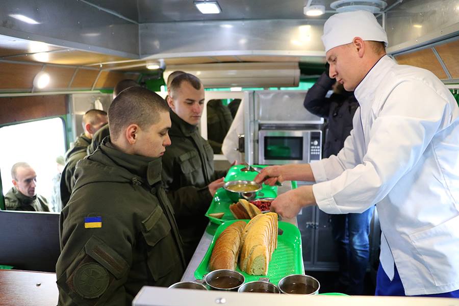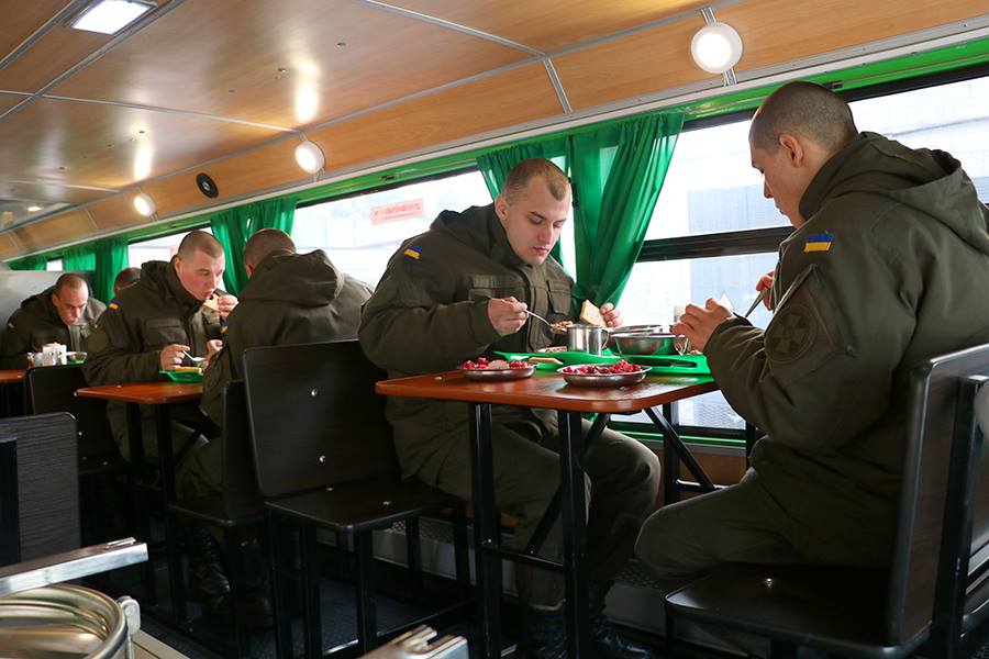 «Цей автобус-їдальня є справді зручним, його оснащено сучасними технологіями для: прийому і приготування їжі, миття рук і збору харчових і побутових відходів. Незалежно від погодних умов і поставлених завдань бійці Національної гвардії України зможуть їсти у виїзних умовах», ─ зазначив начальник служби організації і контролю постачання ГУ НГУ України полковник Віктор Русан.