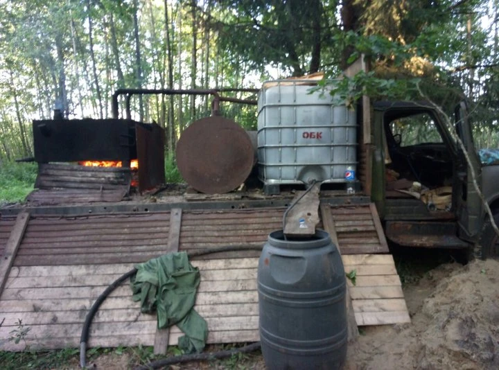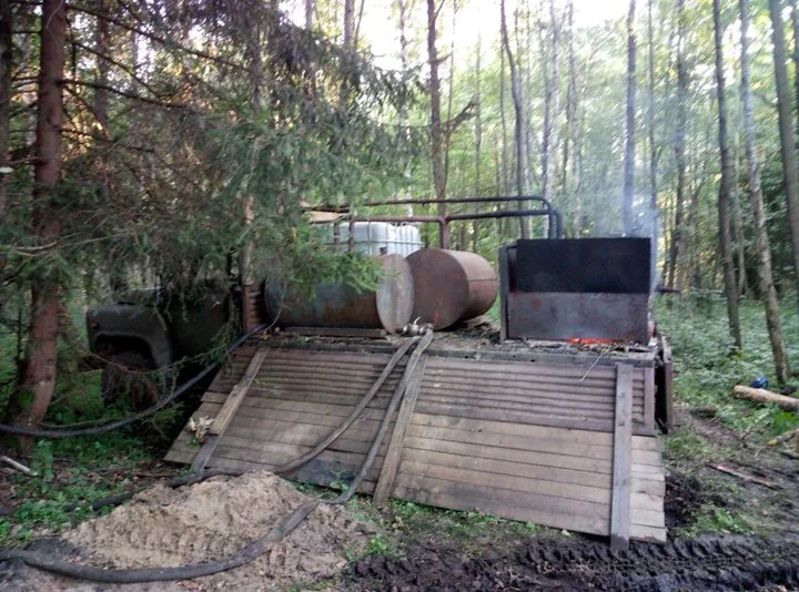 Оказывается, 24 июля 2017 года на территории Новодворского лесничества Беловежской пущи милиционеры нашли передвижной самогонный аппарат. Любитель быстро разбогатеть не нашел ничего оригинальнее, чем поставить это чудо техники в кузов старенького грузовика ГАЗ-53. Прямо на машине он соорудил печку, поставил емкости и змеевик.