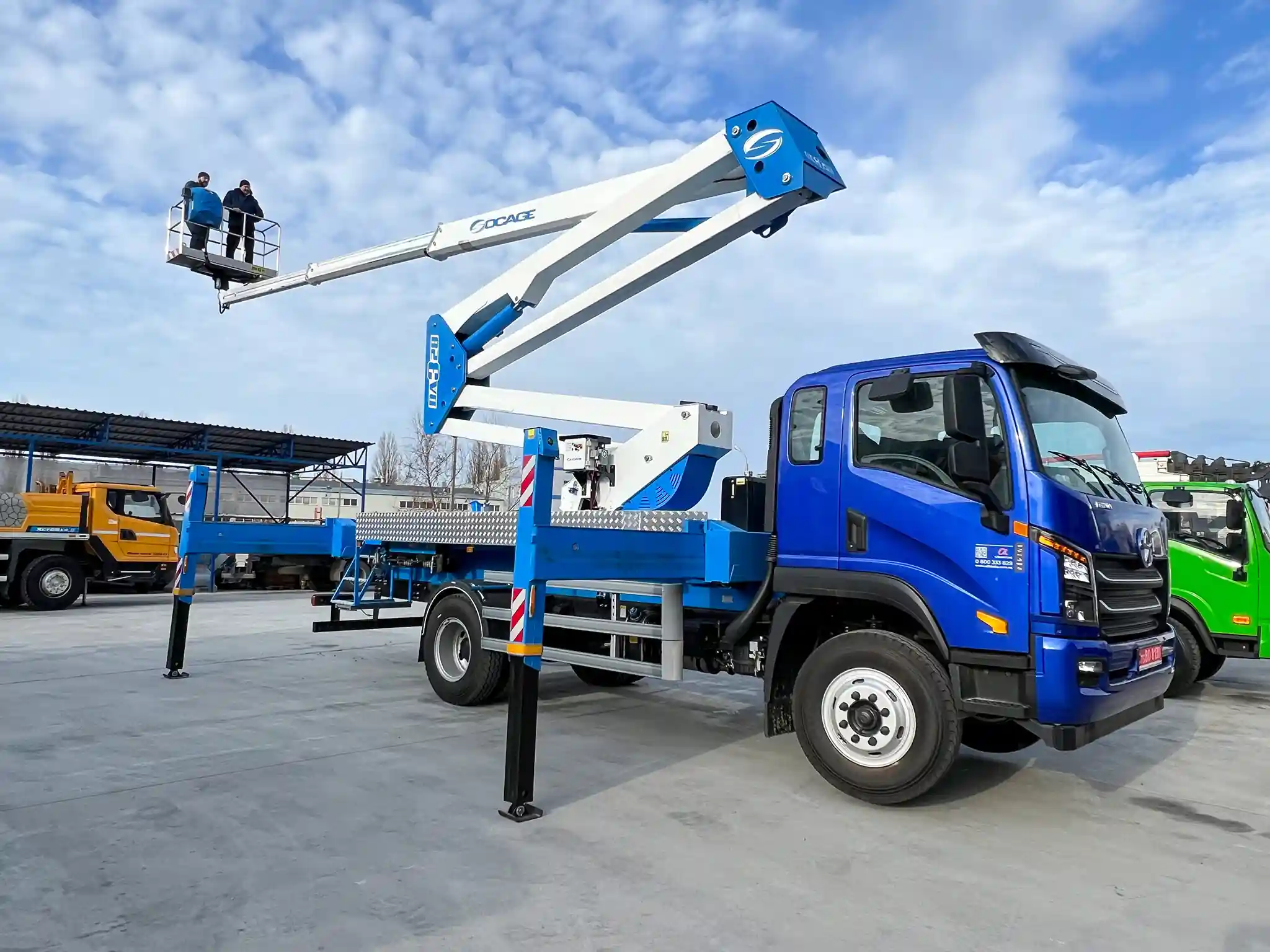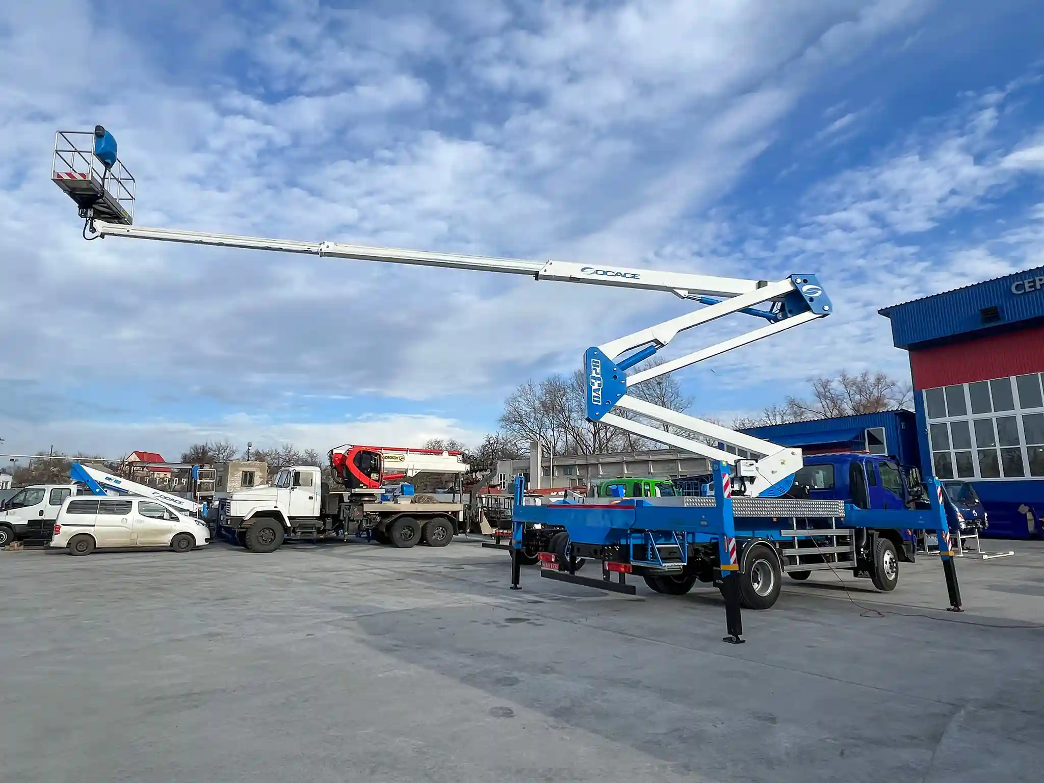 Так, у Дніпропетровську область пішла автовишка Socage DA328 з робочою висотою підйому 28 м, горизонтальним вильотом 16 м та корзиною на 300 кг. Вона змонтована на шасі вантажівки Dayun CGC 1141.