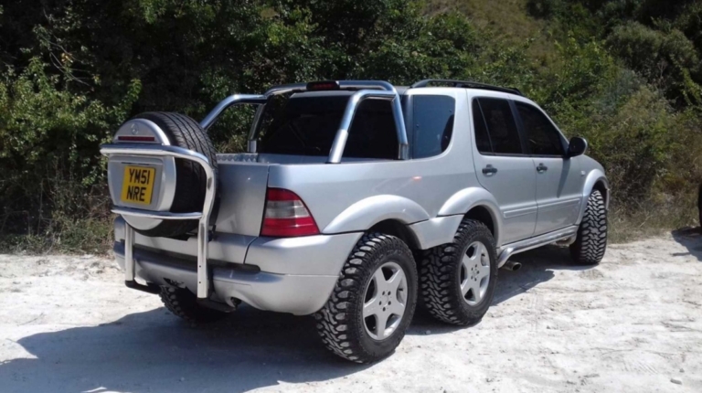 Трехосный пикап Mercedes-Benz ML оснащен оригинальным пакетом AMG, 18-дюймовыми легкосплавными дисками колес, кожаным салоном, фронтальными и боковыми air bag, ESP. Руль – правый. Пробег немаленький – 224 тыс. км. Машина выставлена на продажу всего за 19 995 фунтов или 25 760 долларов.