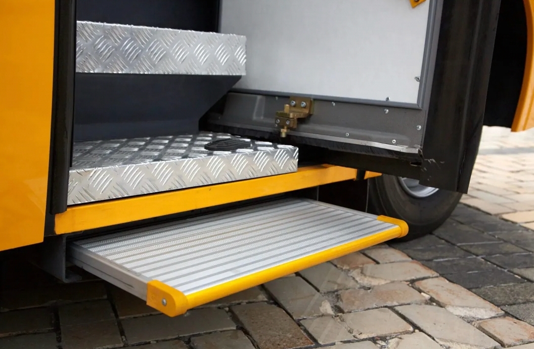 Посадку-висадку полегшує підніжка, яка автоматично висувається під час відкриття дверей.