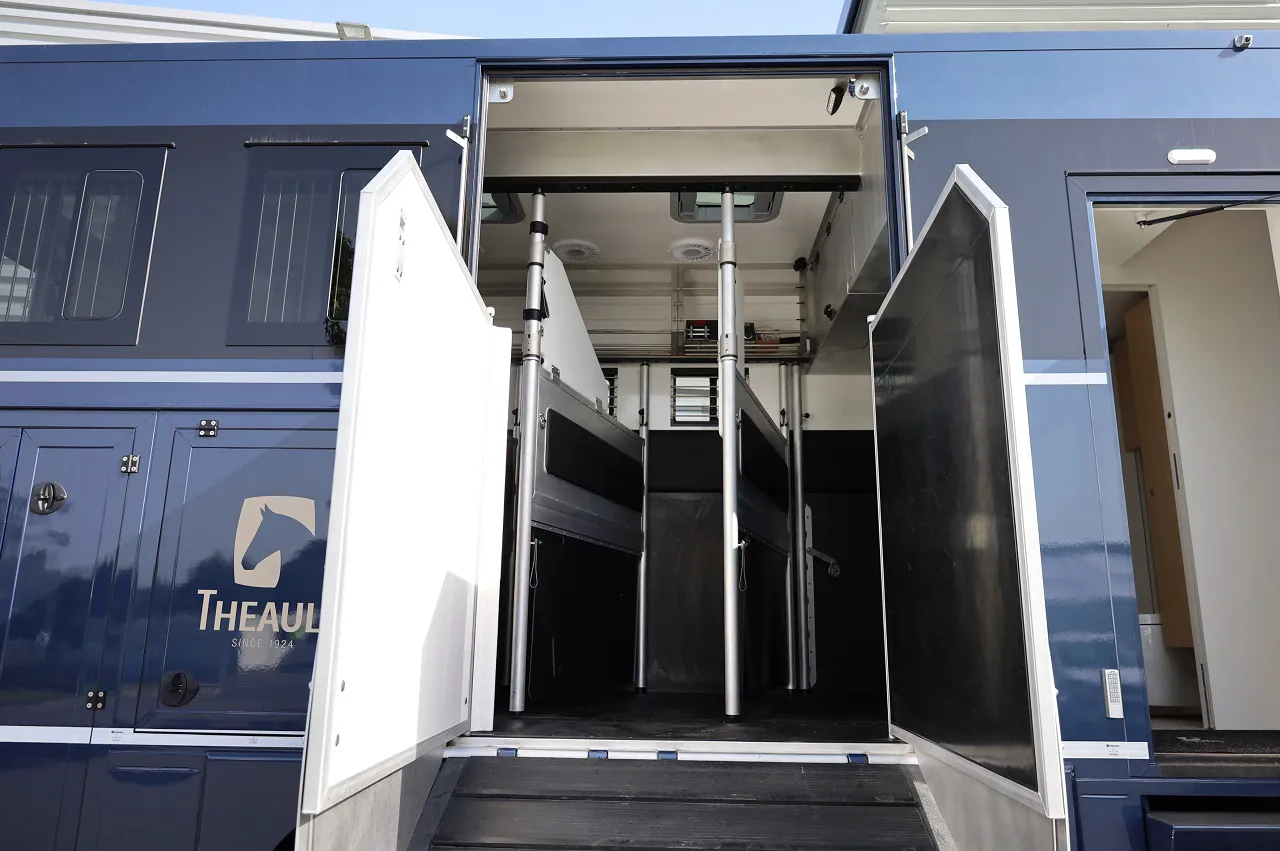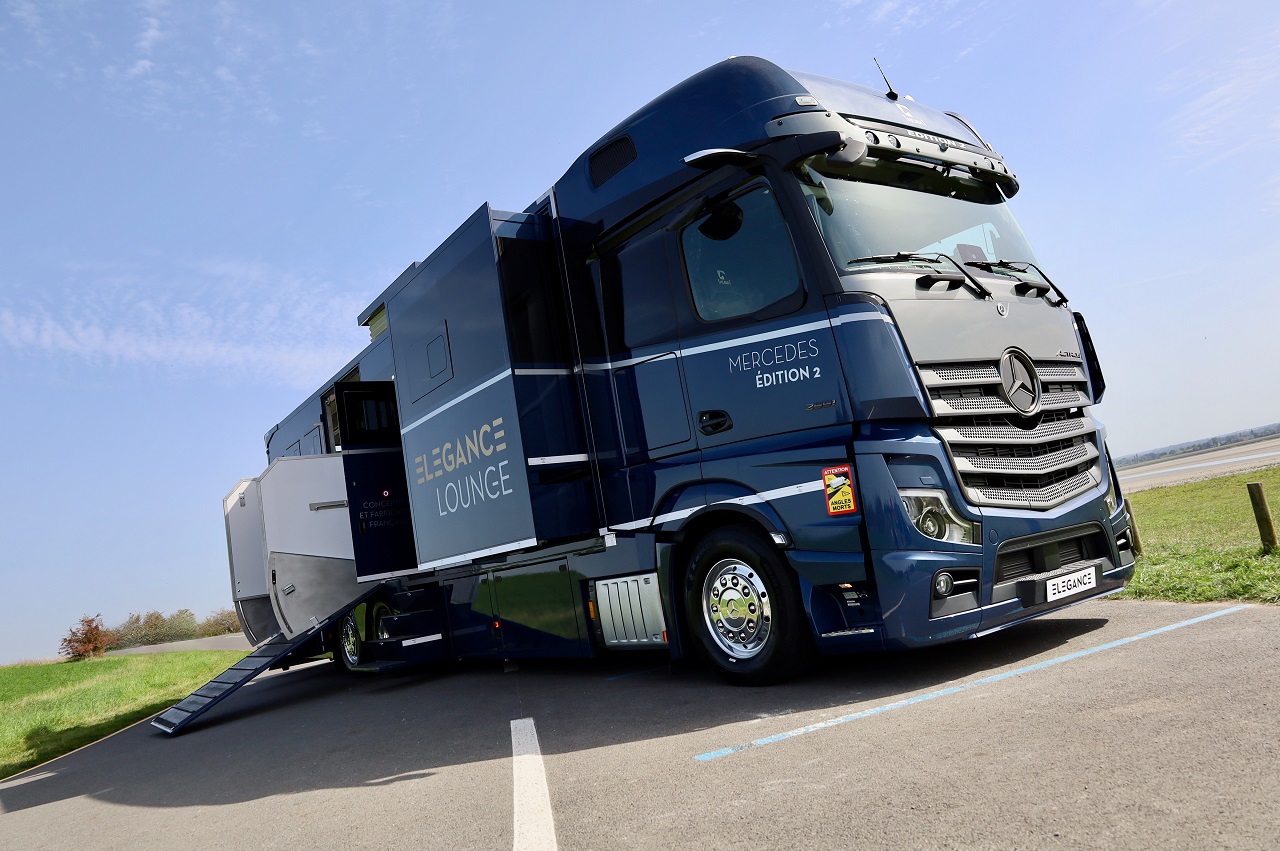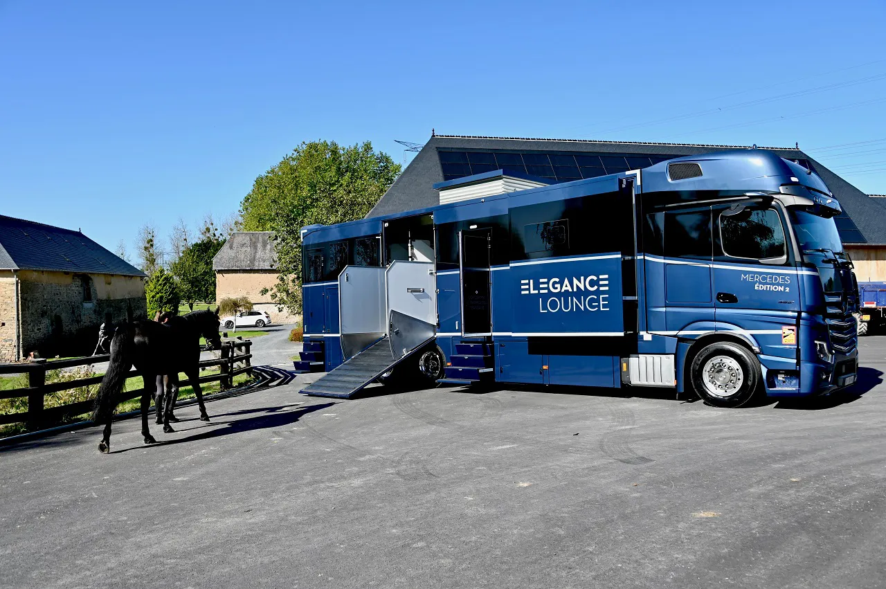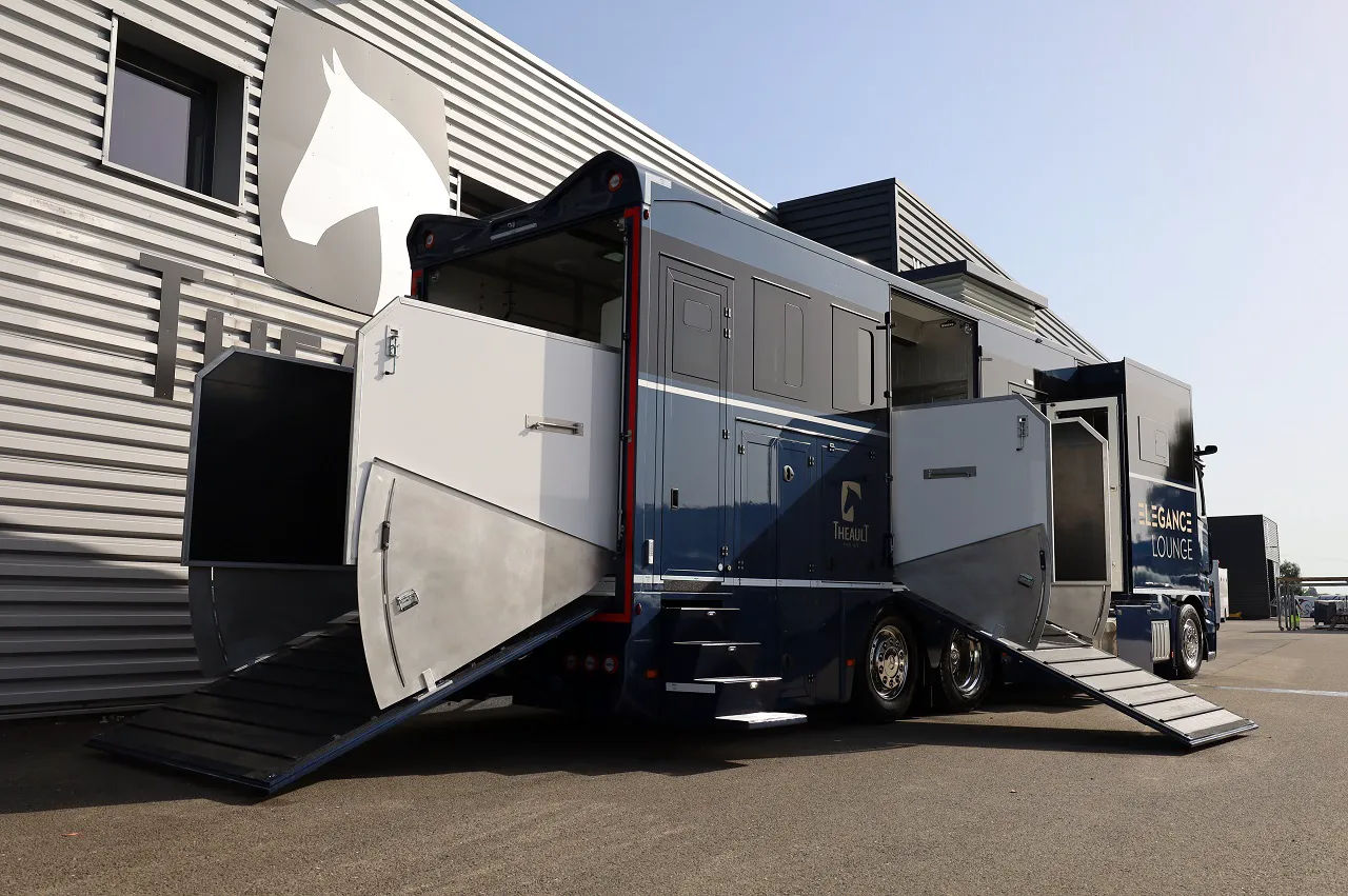Найстаріший французький виробник коневозів – французька компанія Theault, яка цього року відзначає 100-річний ювілей, виготовила люксову модель для перевезення породистих скакунів. Ця 12-метрова машина під назвою Elegance Lounge створена на тривісному (6х2) шасі Mercedes-Benz Actros 2521 Edition 2. Весь процес будівництва зайняв 3000 (!) годин.
