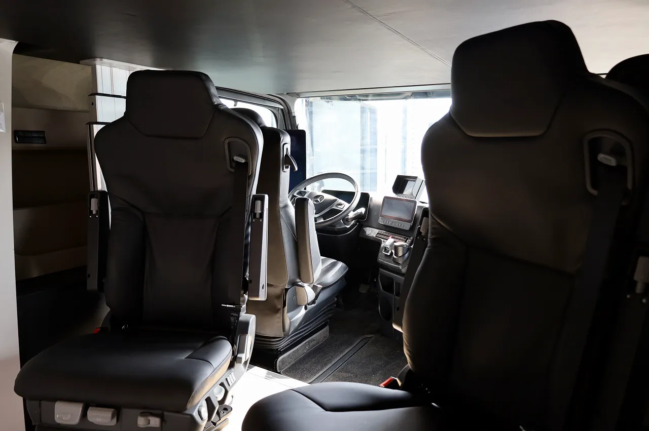 Сама кузовна надбудова має алюмінієву конструкцію з ізоляційними панелями та зовнішньою обшивкою з поліестеру. Цікаво, що у технічному паспорті машина записана як чотиримісна, що є рідкістю. Так, за стандартними сидіннями водія та переднього пасажира встановлено ще два крісла, оснащені триточковими ременями безпеки. Це дуже зручно для поїздок на великі відстані.