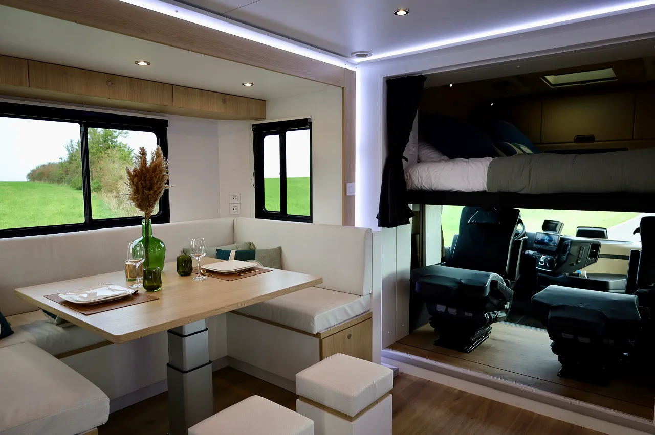 Передбачено шість місць для ночівлі на трьох двоспальних ліжках. Одна знаходиться під стелею, у висувній секції, друга – встановлюється на місці розкладного столу, а третя розташована над кабіною водія. На стоянці можна використовувати бічні розсувні секції, що збільшує корисну площу до 50 м кв.