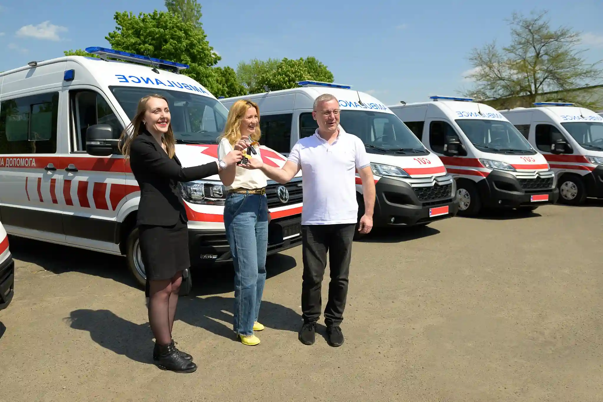 Вчера, 13 мая Министерству здравоохранения Украины были переданы 10 новеньких автомобилей скорой помощи. Это пять машин Citroen Jumper и пять Volkswagen Crafter. Все они укомплектованы различным необходимым оборудованием и будут направлены в прифронтовые районы для обеспечения неотложных медицинских нужд.