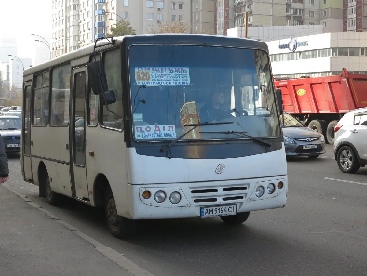 Интересный автобус украинского производства работает на маршруте «Вишневое – Контрактовая площадь». Маршрутка является автобусом ХАЗ-3250 «Антон», построенном на Херсонском автосборочном заводе «Анто-Рус» с использованием китайских агрегатов Dongfeng.
