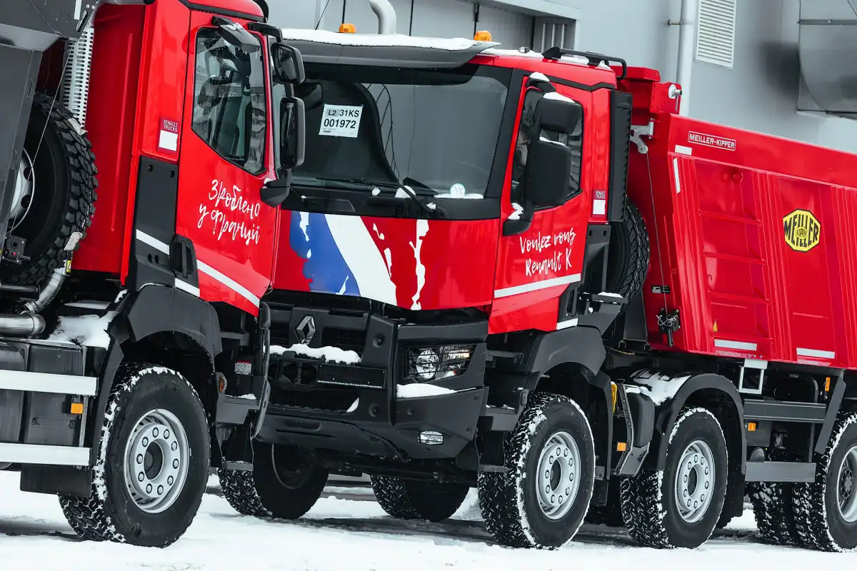 Ценовое предложение действует для моделей Renault K 440 с колесной формулой 8x4 HEAVY.44 Euro-5 с кузовом Meiller и Renault K 440 с колесной формулой 6x4 HEAVY.34 Euro-5 з кузовом KH Kipper или Meiller, которые находятся на складе в Украине.