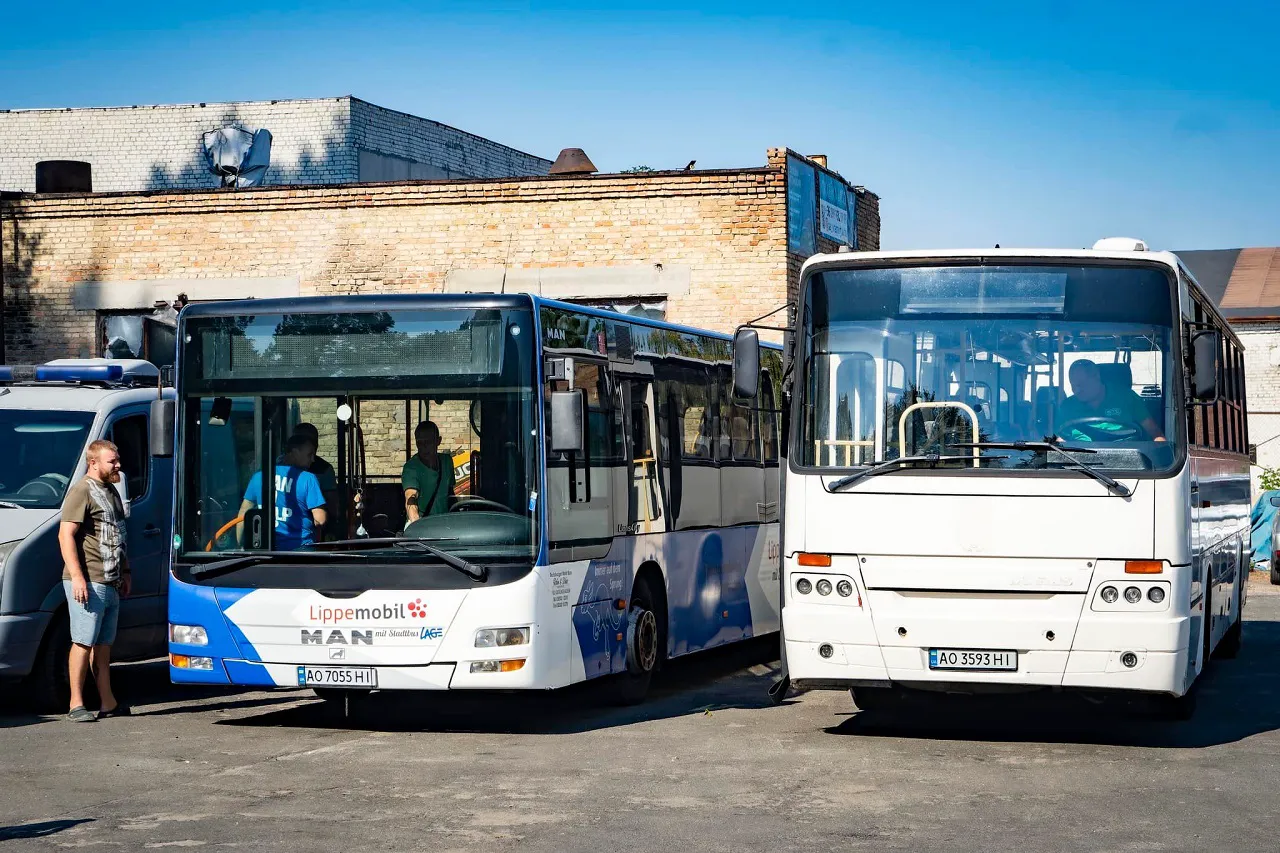 Один із автобусів – міська низькопідлогова модель MAN Lion’s City. Заслуговує на особливу увагу другий автобус – міжміська модель Ikarus C56.42 випуску 1999 року.
