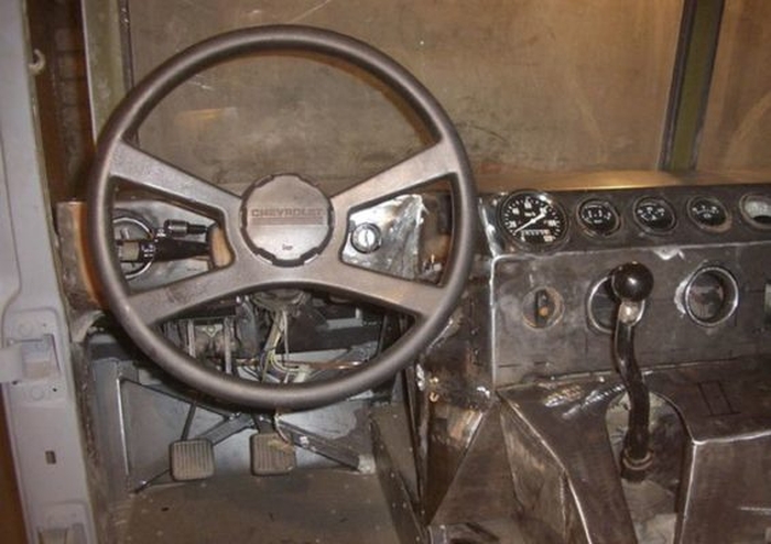 Особое внимание было уделено интерьеру. Появилась новая приборная панель, рулевое колесо от Сhevrolet, комфортабельные кресла. Примечательно, что задник двери открываются против хода – это сделано для красоты. Так что “шестьдесят шестой” Газон превратился в отличный Hummer. Особая гордость – фирменная обувка.