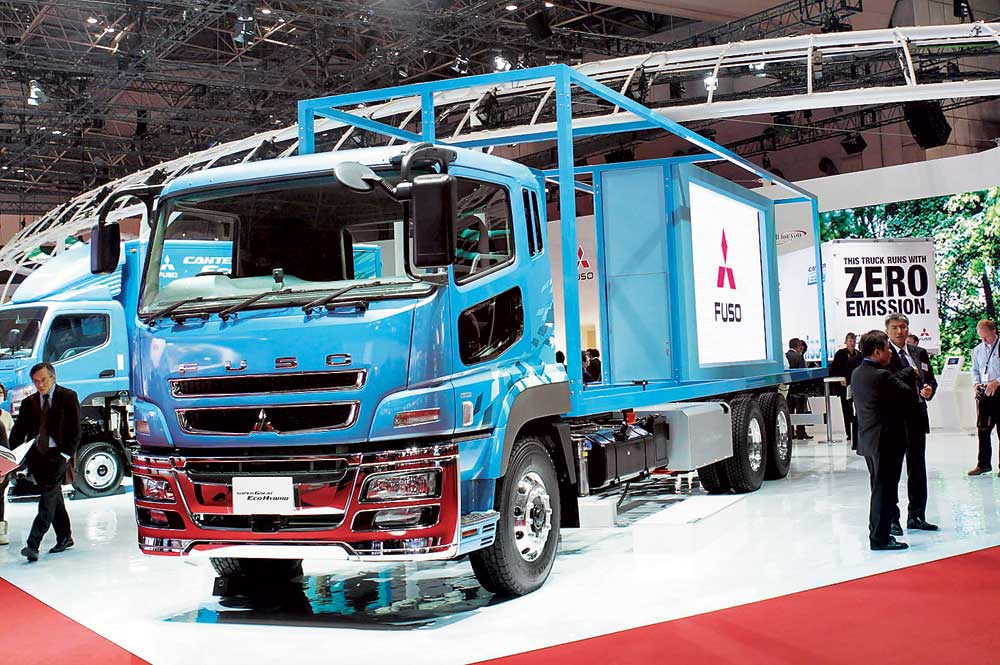 На стенде компании можно было увидеть и первый японский магистральный гибрид – Fuso Super Great Eco Hybrid. Автомобиль оборудован параллельным гибридным приводом, в состав которого входят фирменный дизель 6R10, электромотор-генератор и 12-ступенчатая роботизированная коробка передач INOMAT-II. Первые тесты показали, что автомобиль может экономить до 10% топлива по сравнению с дизельными аналогами. В течение ближайших трех лет планируется достичь экономии в 30%.