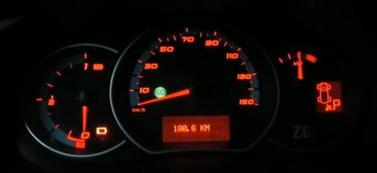 Во время теста доработанного Renault Kangoo Z.E. с работающим отопителем расход составил 20 кВтч. на 100 км. То есть проезжаем до 5 км на 1 кВт.ч. на. У Nissan Leaf этот показатель доходит до 7 км. 3 часа езды по городу и пробег 100 км. По приборам в батареях осталось около 25% заряда. При пробеге 121 км засветился индикатор и раздался звуковой сигнал о критическом малом заряде. Еще через 20 км пробега замигал индикатор слабого заряда батареи. Однако машина проехала еще 40 км после этого – на одометре 180,6 км. Однако до полной разрядки решили не доводить.