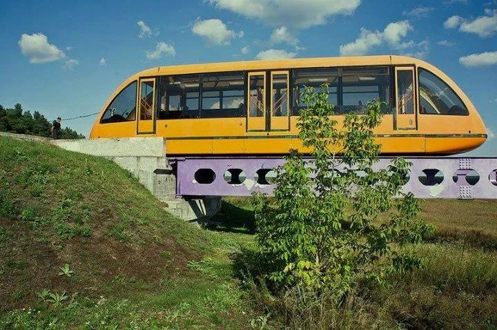 Вот уже почти несколько лет монорельсовый капвей стоит без дела на охраняемой территории. Это довольно современного вида вагон на электротяге, который установлен на железной эстакаде-рельсе длиной около 300 метров. Вагон оснащен резиновыми колесами, что позволяет ему передвигаться с минимальным шумом. Расчетная максимальная скорость – 120 км/ч.