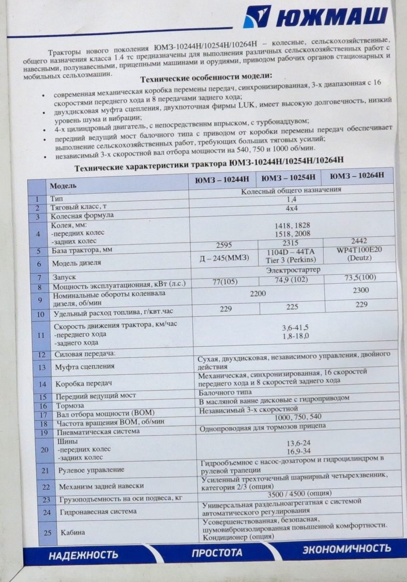 Отметим, что трактор нового поколения ЮМЗ предлагается также еще в двух вариантах. Это ЮМЗ-10244Н – с турбодизелем Д-245 (ММЗ) мощностью 105 л.с. и ЮМЗ-10254Н – со 102-сильным двигателем Perkins (1104D-44TA) Tier 3.