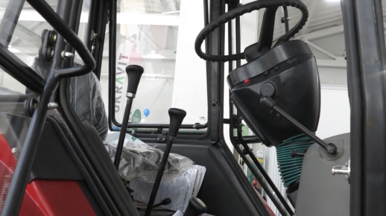 Трактор ЮМЗ-10264Н оснащается усовершенствованной кабиной, с улучшенной шумовиброизоляцией. ВНа представленном образце установлен кондиционер (опция).