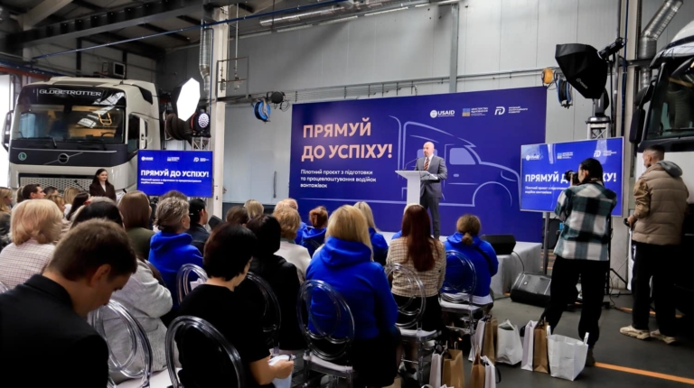 На території компанії «Вольво Україна» 4 жовтня відбулась офіційна презентація пілотного проєкту з підготовки та працевлаштування водійок вантажівок, який реалізовує ГО Фундація інституційного розвитку за ініціативи Міністерство розвитку громад, територій та інфраструктури України та за підтримки Програма USAID «Конкурентоспроможна економіка України»