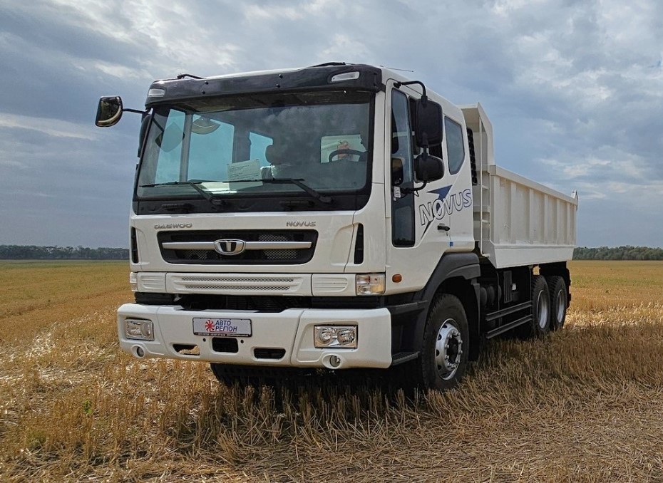 На стенді були представлені й машини Daewoo Trucks важкого класу. Це самоскид Novus CL4D3 (6х4) вантажопідйомністю 18 т. Кузов заднього розвантаження має об’єм 10 кубометрів і може підніматися на кут до 53 град. Машина повною масою 29,5 т укомплектована турбодизелем Doosan робочим об’ємом 7,6 л і потужністю 350 к. с. Коробка передач – механічна 6-ступенева.