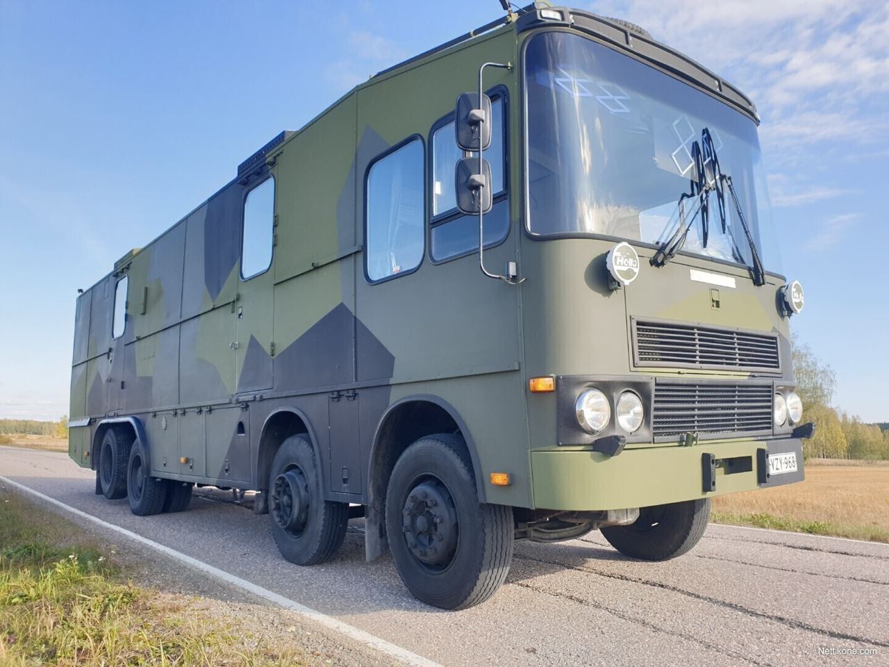 Цей незвичайний армійський фургон на чотиривісному шасі (8х2) вантажівки Sisu M-168 сьогодні продають у Фінляндії. Машина 1982 року випуску і таких зробили лише чотири одиниці.