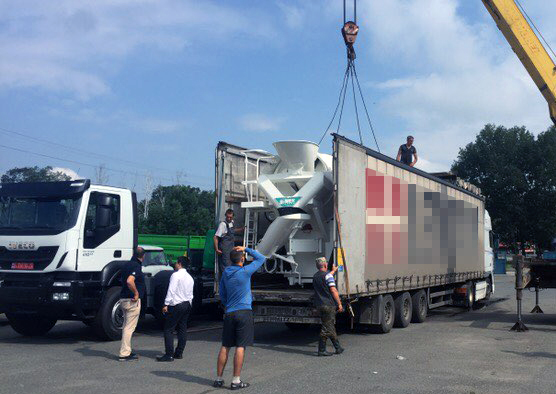 Фуры с необычным грузом в данном случаю прибыли на Завод спецтехники «Техкомплект», который является официальным дистрибьютором IMER в Украине. С помощью автокрана за бетоносмесители были установлены на шасси грузовиков IVECO Trakker. Вся работа заняла считанные часы.