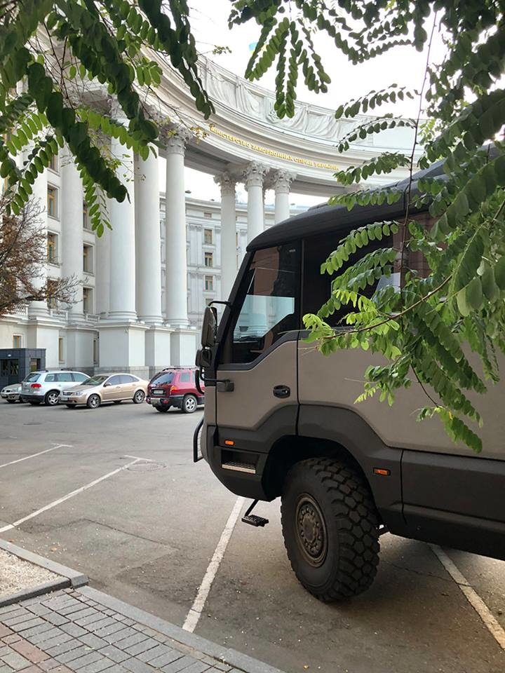 У парадного входа Министерства иностранных дел Украины совсем недавно можно было наблюдать необычный автобус – Torsus Praetorian. Эта необычного вида машина была выбрана в качестве шаттла для доставки дипломатов на традиционную конференцию с представителями иностранных посольств в Украине.